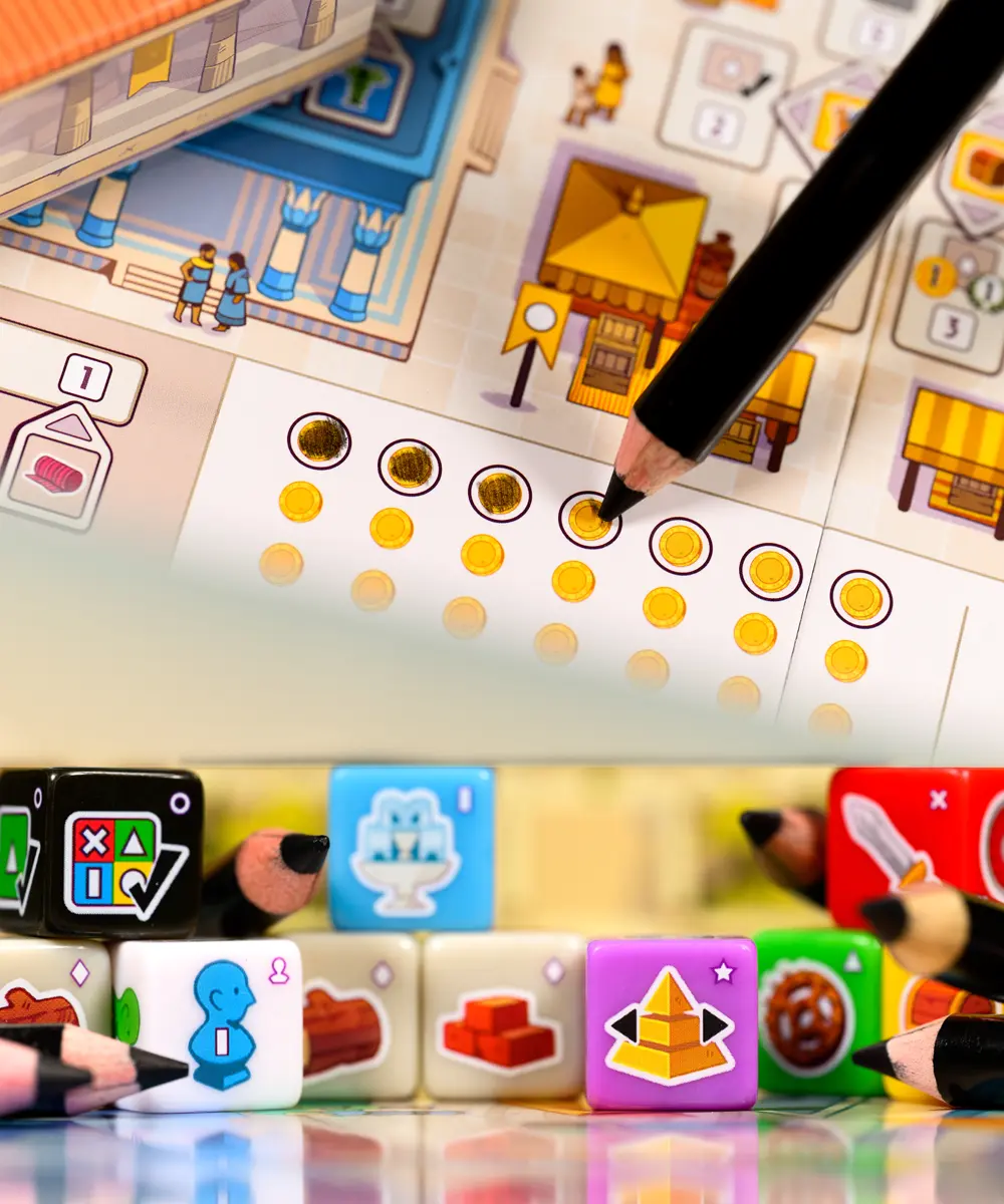 Středem hry je Fórum – speciální krabička, ve které se přehazují kostky. Ty představují suroviny, zlato, vědu, vojenskou sílu či přístup k budovám. V každém kole si vyberete jednu ze sedmi kostek a výsledek využijete pro stavbu budovy či pokrok ve svém městě. Rozhodnutí, kterou cestu zvolíte, je klíčem k úspěchu – zaměříte se na vědu, vojenskou sílu nebo raději investujete do obchodu?