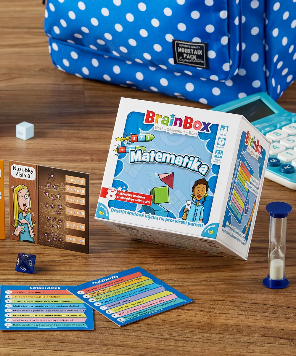 V Brainbox – Matematika jde o rychlost, postřeh a matematické znalosti. Hra je určena pro 1 a více hráčů ve věku od 8 let. Délka jedné partie se pohybuje mezi 10 až 15 minutami, což ji činí ideální pro krátké herní seance i delší turnaje.