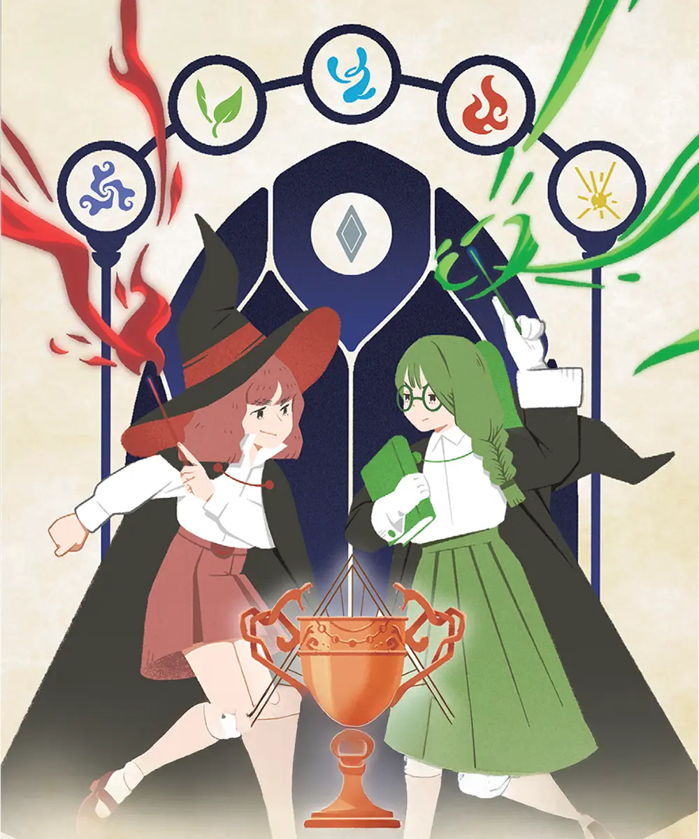 • Přehledné a elegantní karty s ilustracemi, které podporují atmosféru čarodějného turnaje a zároveň jsou snadno čitelné.