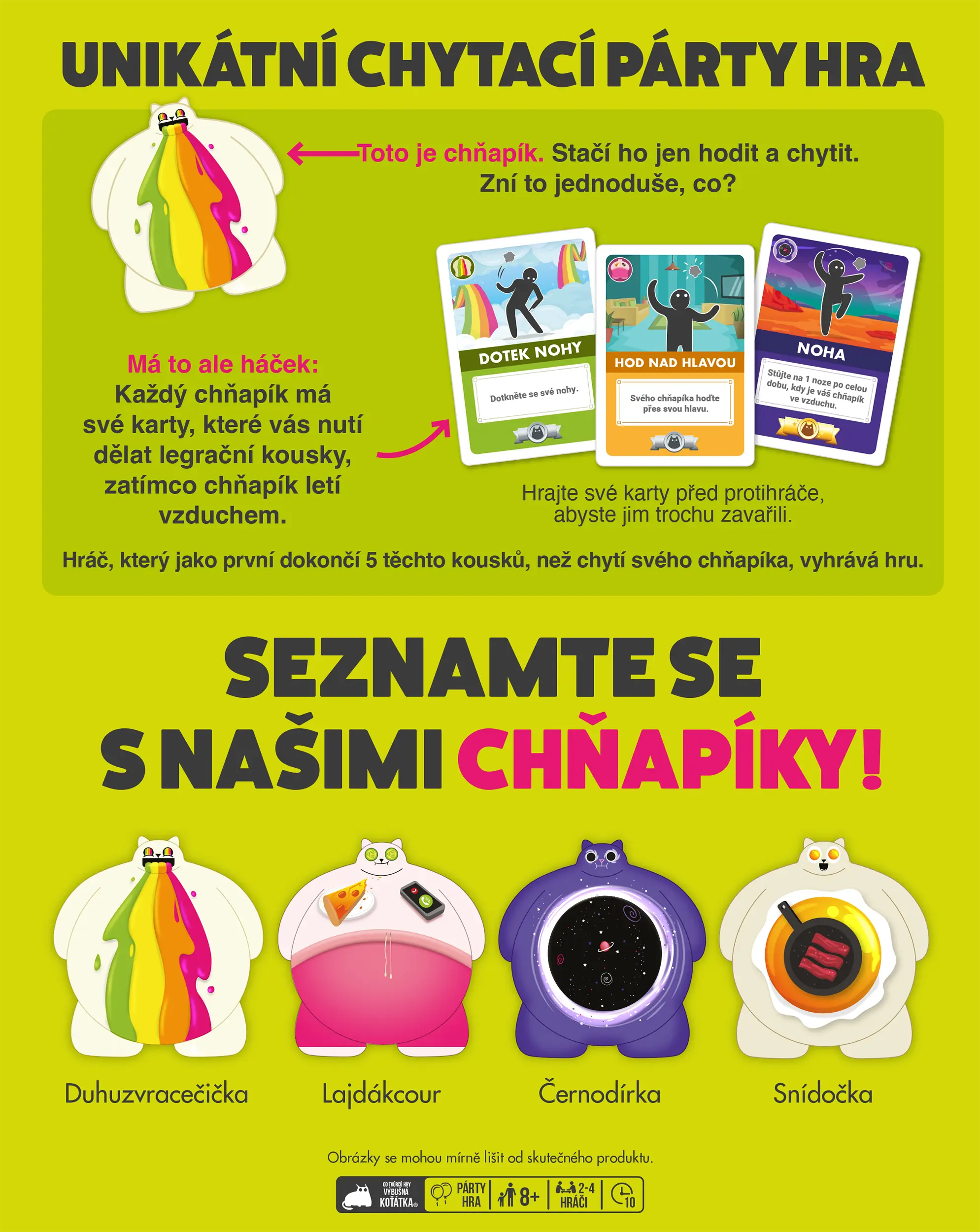 Chňapíci přinášejí rychlou a fyzickou zábavu, při které během jednoho hodu plníte vtipné úkoly a snažíte se porazit soupeře. Ideální hra pro rodiny i přátele, kteří chtějí okamžitou akci.