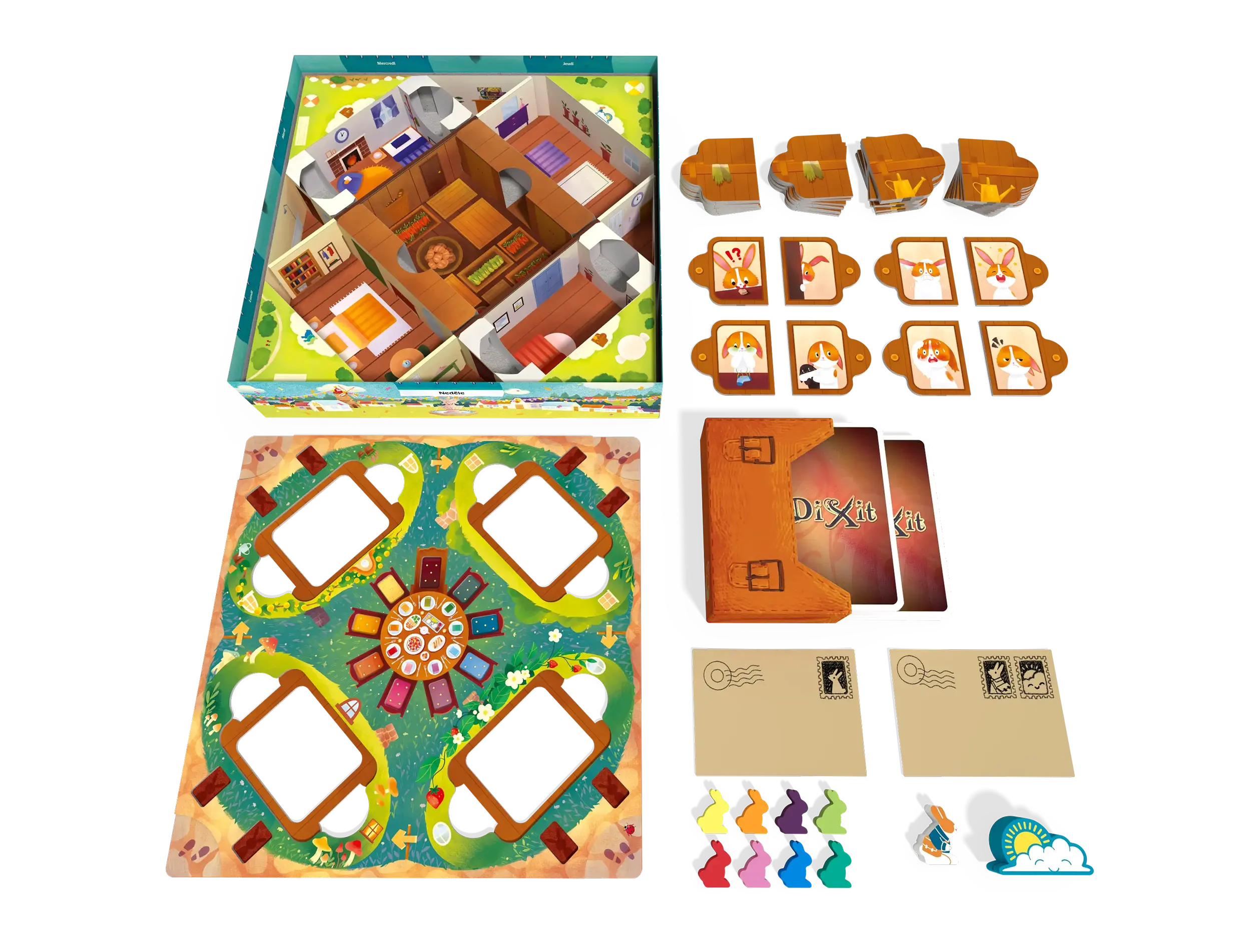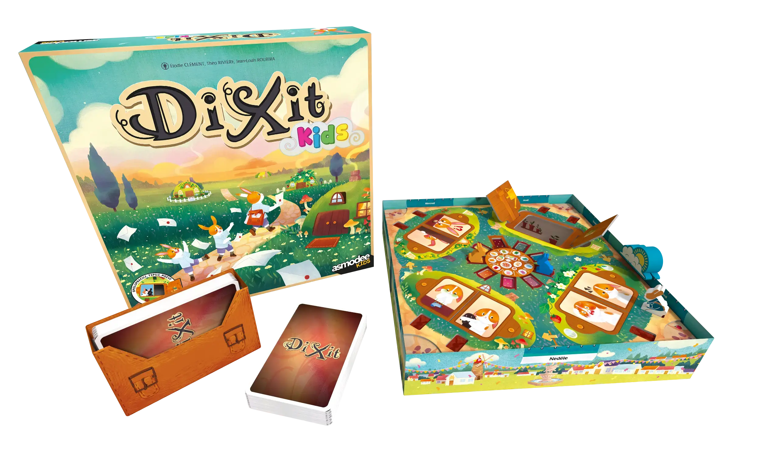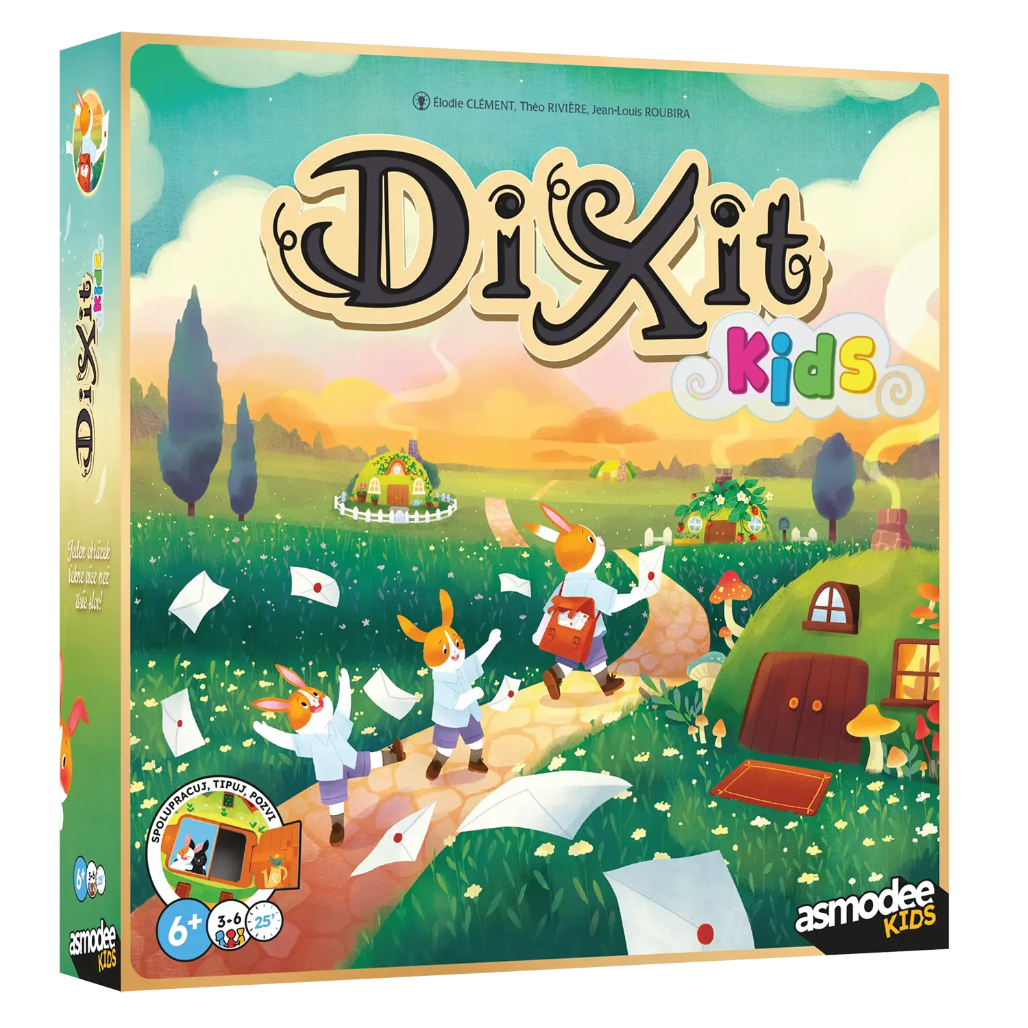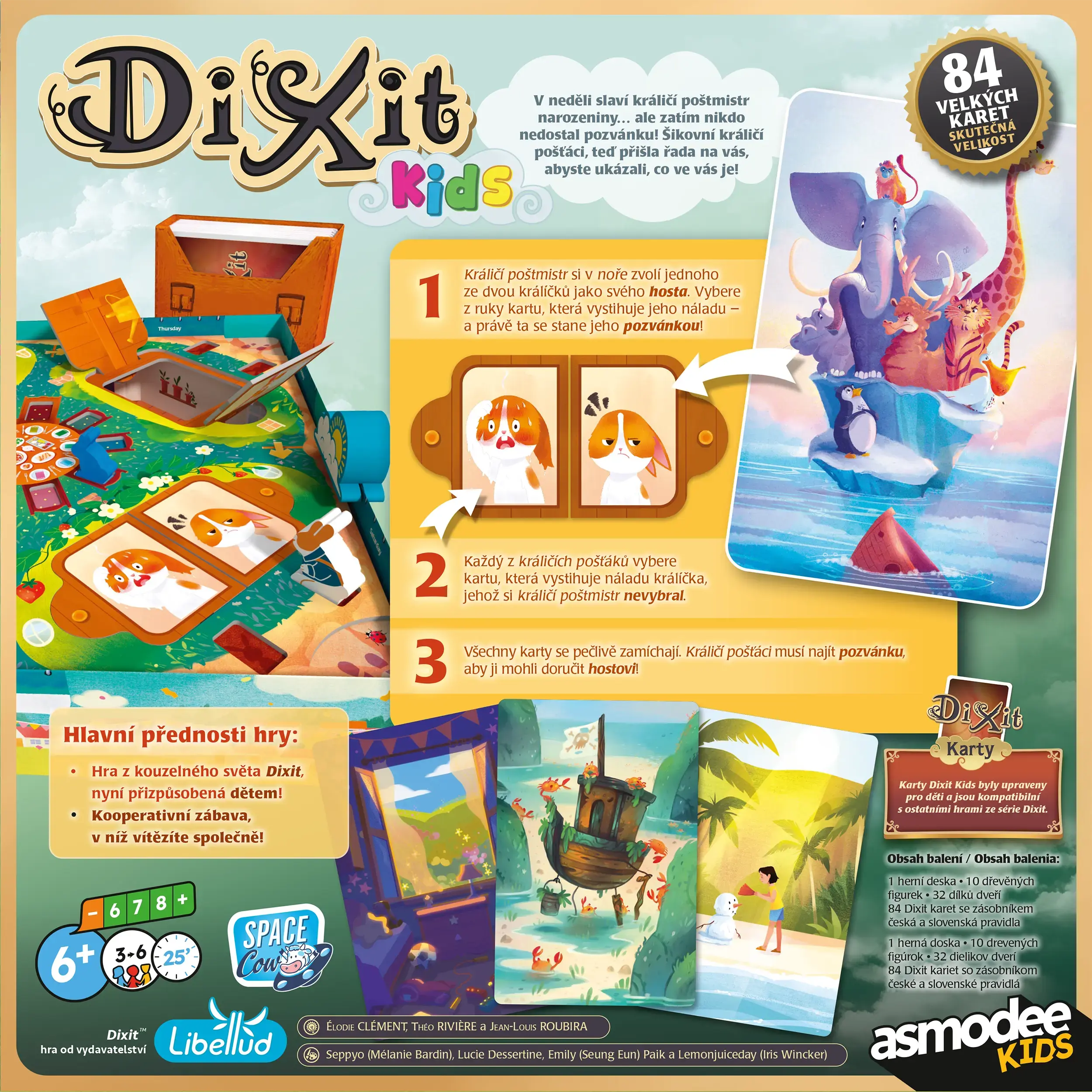 Dixit Kids přenáší dětskou fantazii do světa králíčků, kteří se chystají na narozeninovou oslavu králičího poštmistra. Hráči společně hledají správné pozvánky, rozhodují podle pocitů z ilustrací a krok za krokem rozsvěcují atmosféru blížící se oslavy, která se mění s každým otočeným obrázkem.