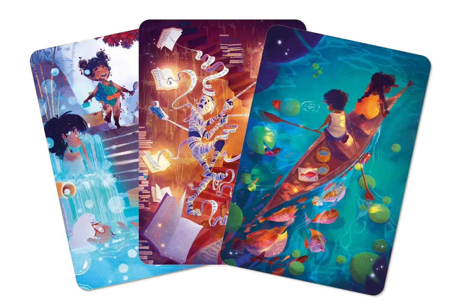 - Ilustrace připravené speciálně pro dětské publikum nabízejí spoustu vizuálních nápadů, které děti inspirují k vlastním příběhům a vracejí je ke kartám i mimo hraní.