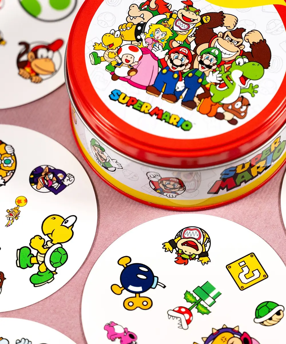 Vydejte se na vzrušující dobrodružství s Mariem a jeho přáteli v této jedinečné verzi populární hry Dobble. Otestujte svůj postřeh, rychlost a znalost ikonického světa Super Maria v zábavné hře pro celou rodinu.