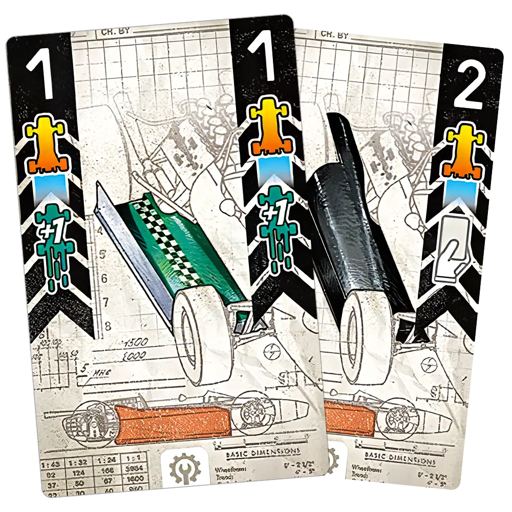 - sada pro dalšího hráče: 1 závodní auto, 1 řadicí páka, 1 herní podložka, základní a startovní karty