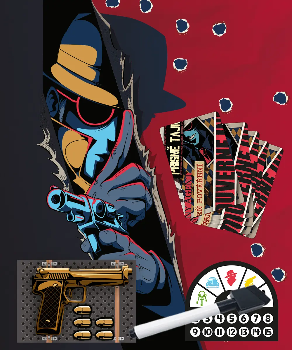 Staňte se agenty tajné organizace a vydejte se na dvacet propojených misí, ve kterých musíte společnými silami odhalit a eliminovat infiltrační agenty. Každý z vás má v ruce karty s čísly a barvami – klíčem k odhalení zrádců je kombinace logiky, nápověd a správného načasování. Chyťte podezřelé, veďte týmovou dedukci pomocí nápověd, vyměňujte si informace a pokuste se bezchybným výstřelem eliminovat pravého zrádce.