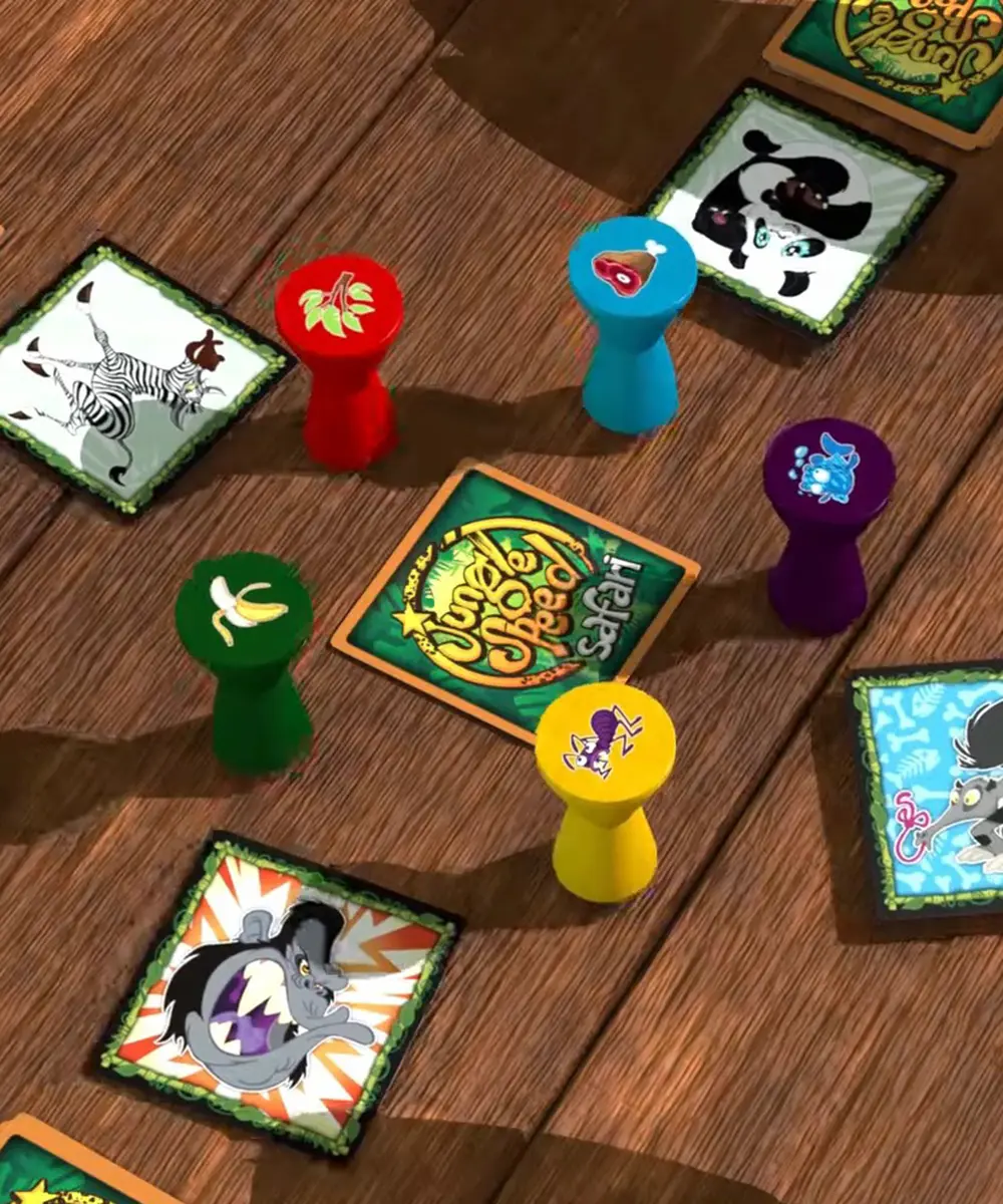 V Jungle Speed Safari se ocitnete uprostřed africké savany, kde zvířata soupeří o nejlepší potravu. Hra kombinuje prvky postřehu, rychlosti a paměti, což z ní činí zábavnou výzvu pro hráče všech věkových kategorií.