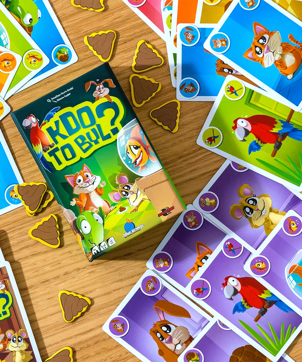 Bláznivé obviňování v Kdo to byl?! Zbavte své mazlíčky viny, obviňte soupeře a vyhněte se bobkovému průšvihu v této rychlé rodinné hře.
