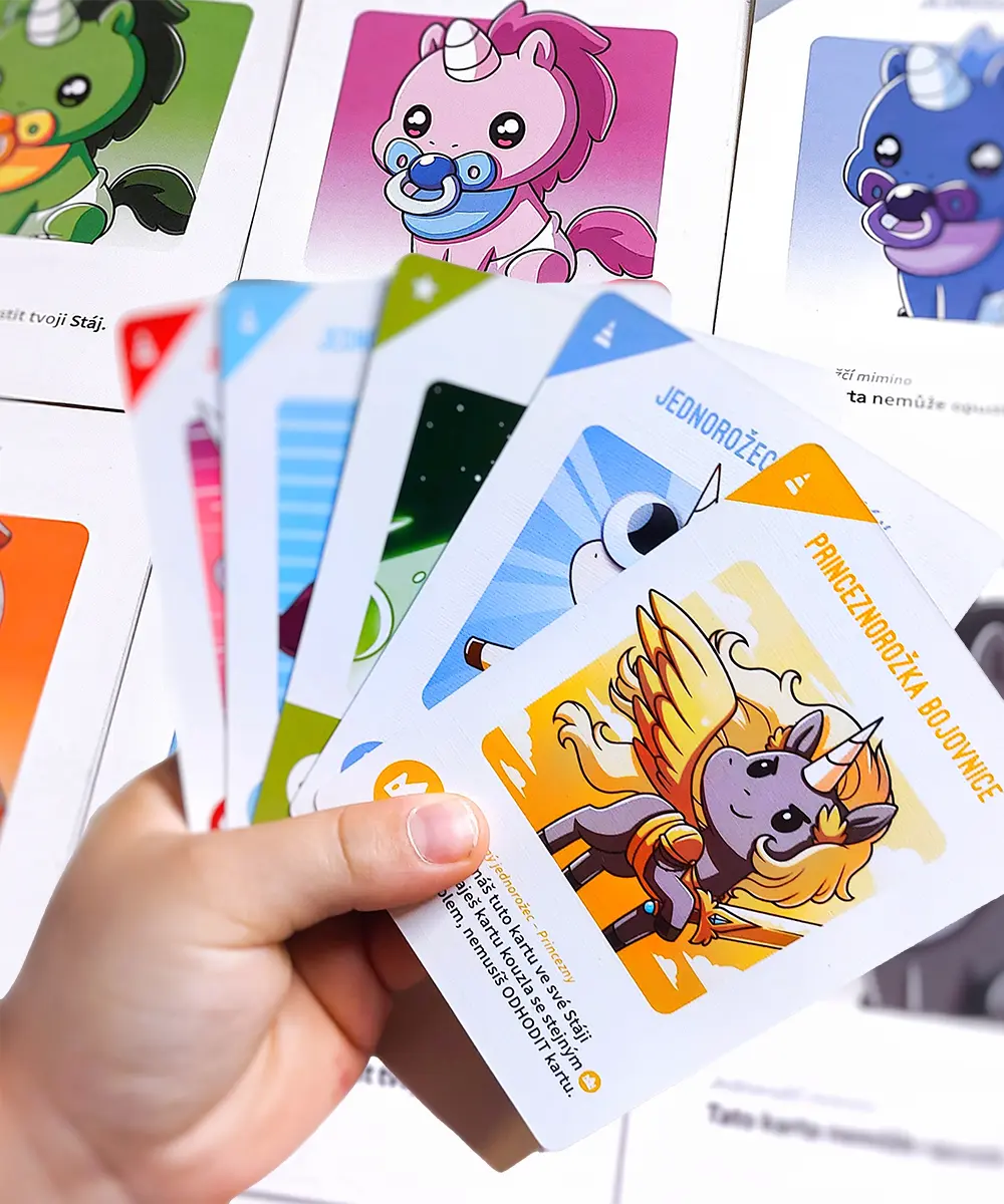 Labilní jednorožci: Pro děti je dětskou verzí populární hry Labilní jednorožci, která si získala srdce hráčů po celém světě. Původní hra byla vydána v roce 2017 vydavatelstvím Unstable Games a rychle se stala fenoménem – na Kickstarteru se dostala mezi 100 nejpodporovanějších projektů všech dob a celosvětově se jí prodalo přes milion kopií.