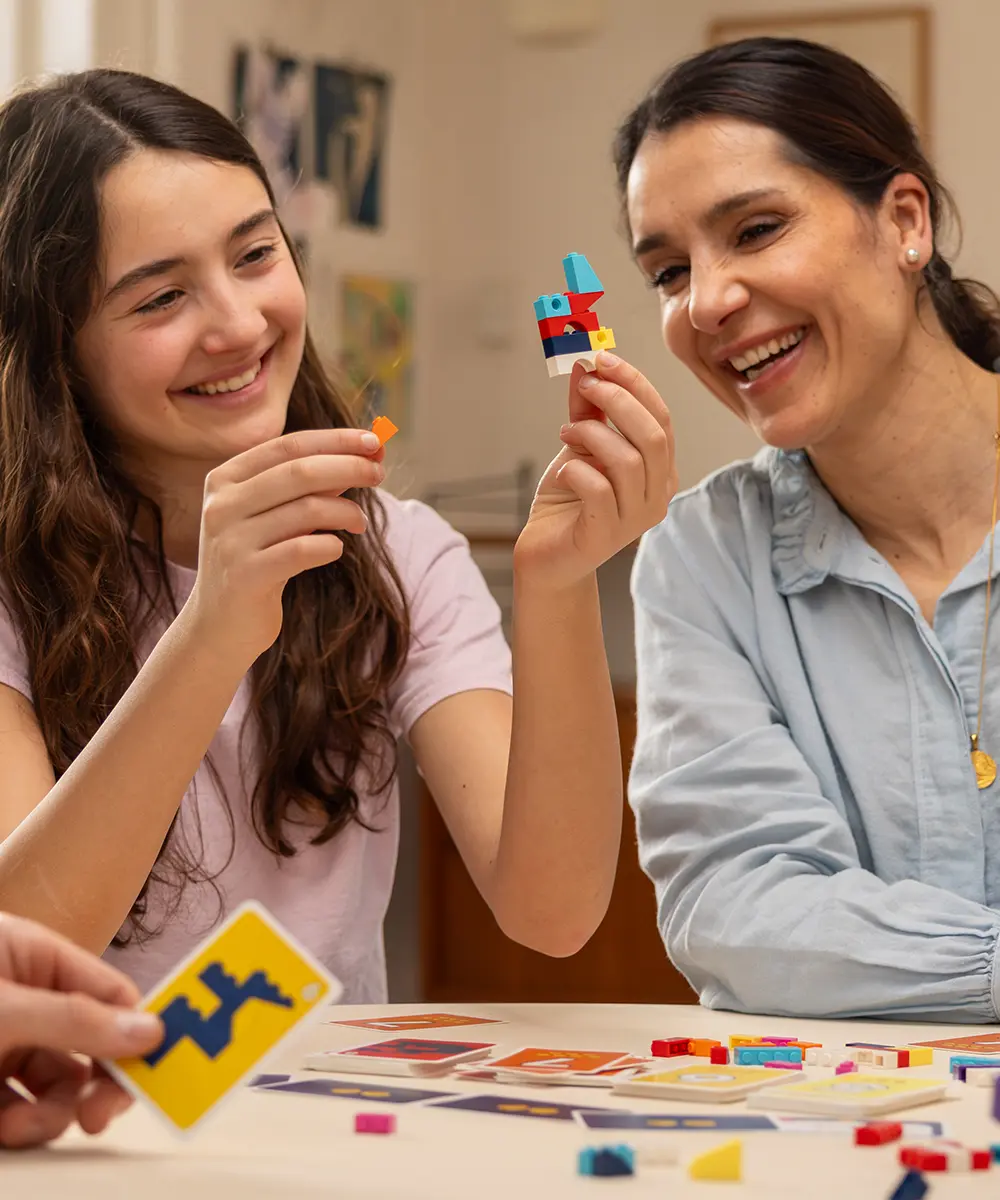 Napětí roste s každým kolem, protože obtížnost modelů narůstá a karty výzev přinášejí stále šílenější podmínky – třeba stavění se zavřenýma očima nebo s použitím pouze jedné ruky. Výsledkem je směsice soustředění a smíchu, která rozzáří každou herní partii.