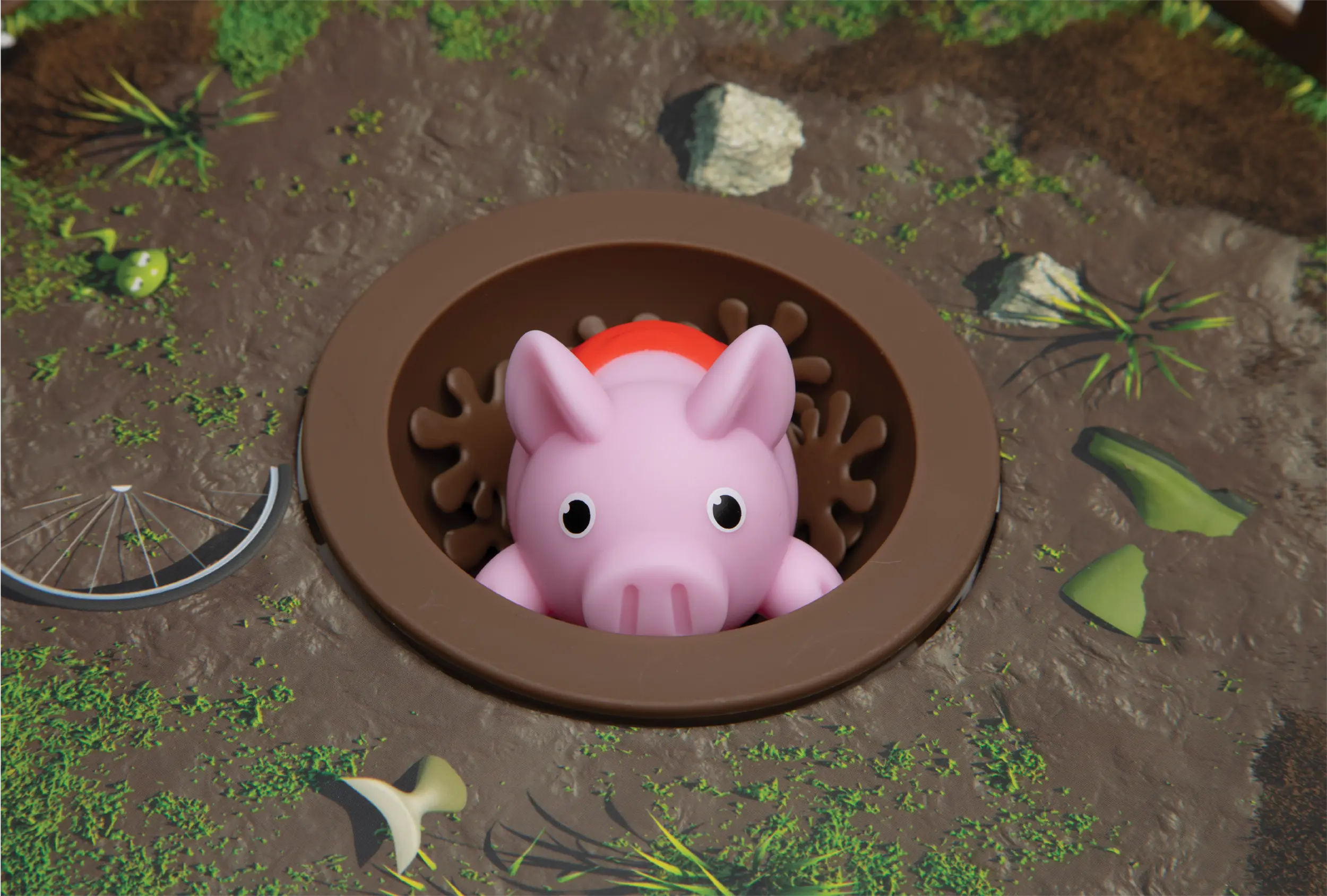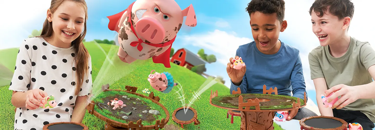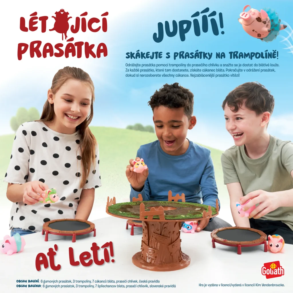 Blátivý chlívek, trampolíny a gumová prasátka – dětská hra Létající prasátka přináší smích, napětí a závod o nejzablácenější vítězství. Každý odraz rozhoduje, komu se podaří získat nejvíce cákanců bláta a stát se opravdovým králem prasečí louže.