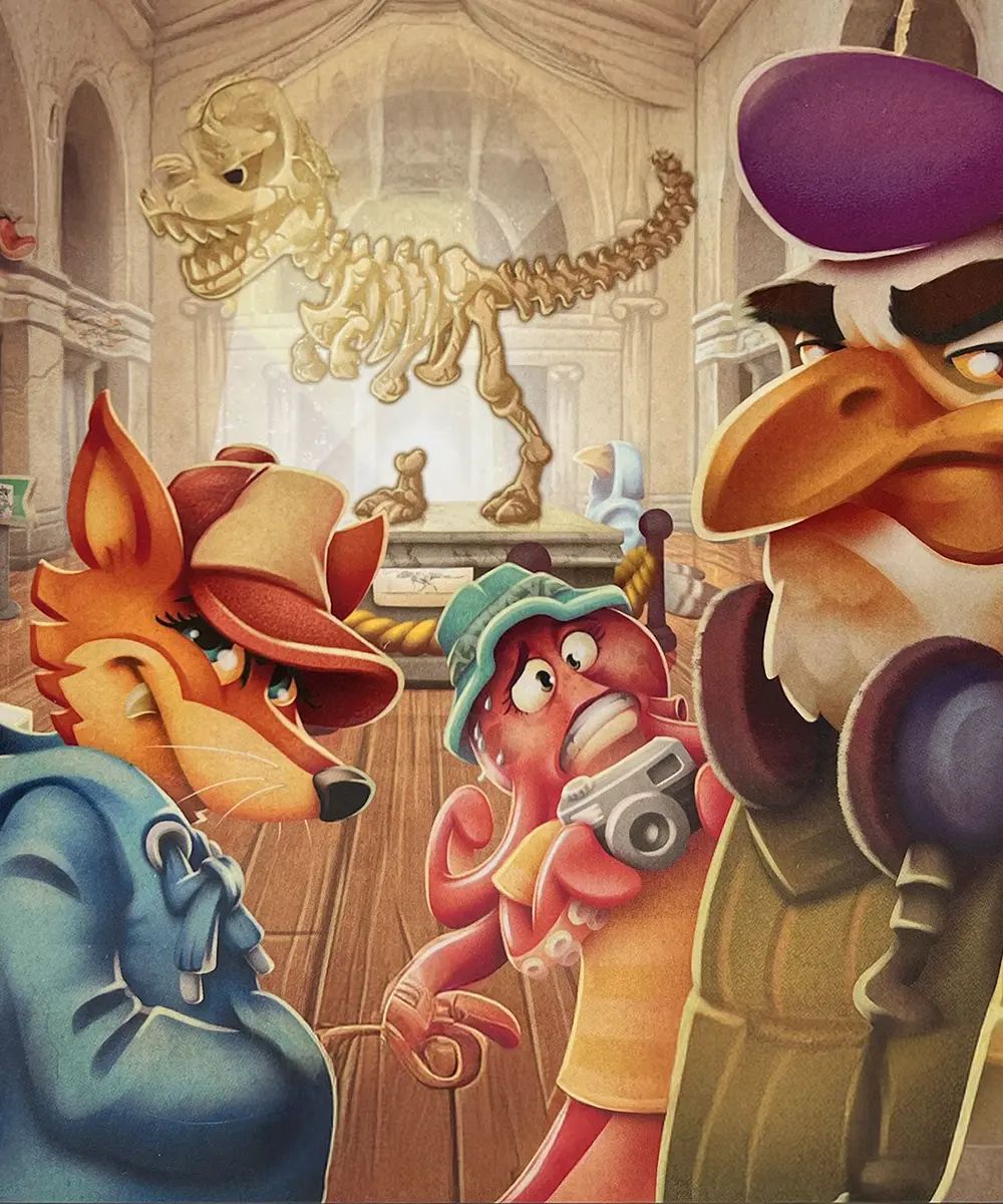 V Muzeu podezřelých se stanete detektivy vyšetřujícími krádež vzácného artefaktu. Vaším úkolem je odhalit pachatele mezi 16 podezřelými zvířecími návštěvníky muzea. V každém z šesti kol prozkoumáte jednu stopu a označíte podezřelého. Stopy vám pomohou vyloučit nevinné, ale pozor – jiní detektivové se mohou snažit zmást vás falešnými indiciemi. Na konci hry odhalíte skutečného pachatele (nebo pachatele) a vítězem se stane ten, kdo na ně vsadil nejvíce bodů.