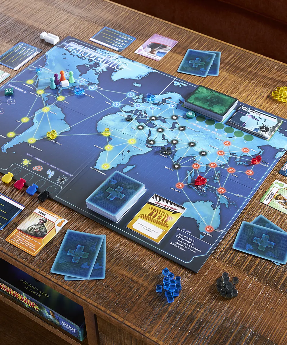 Ve hře Pandemic se ocitnete v roli specialistů, jejichž úkolem je zastavit šíření čtyř nebezpečných nemocí po celém světě. Každý hráč má unikátní schopnosti, které musí efektivně využívat ve prospěch týmu. Budete cestovat mezi městy, léčit nemocné, budovat výzkumné stanice a hledat léky.