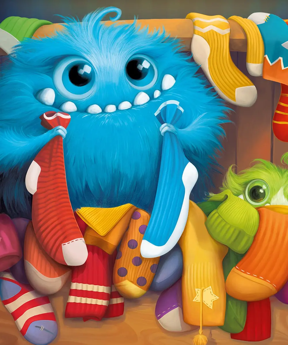 Dobrodružství s lichými ponožkami ve hře Ponožkožrouti! Hledejte páry, unikejte příšerkám a objevujte nové místnosti v této rodinné hře.