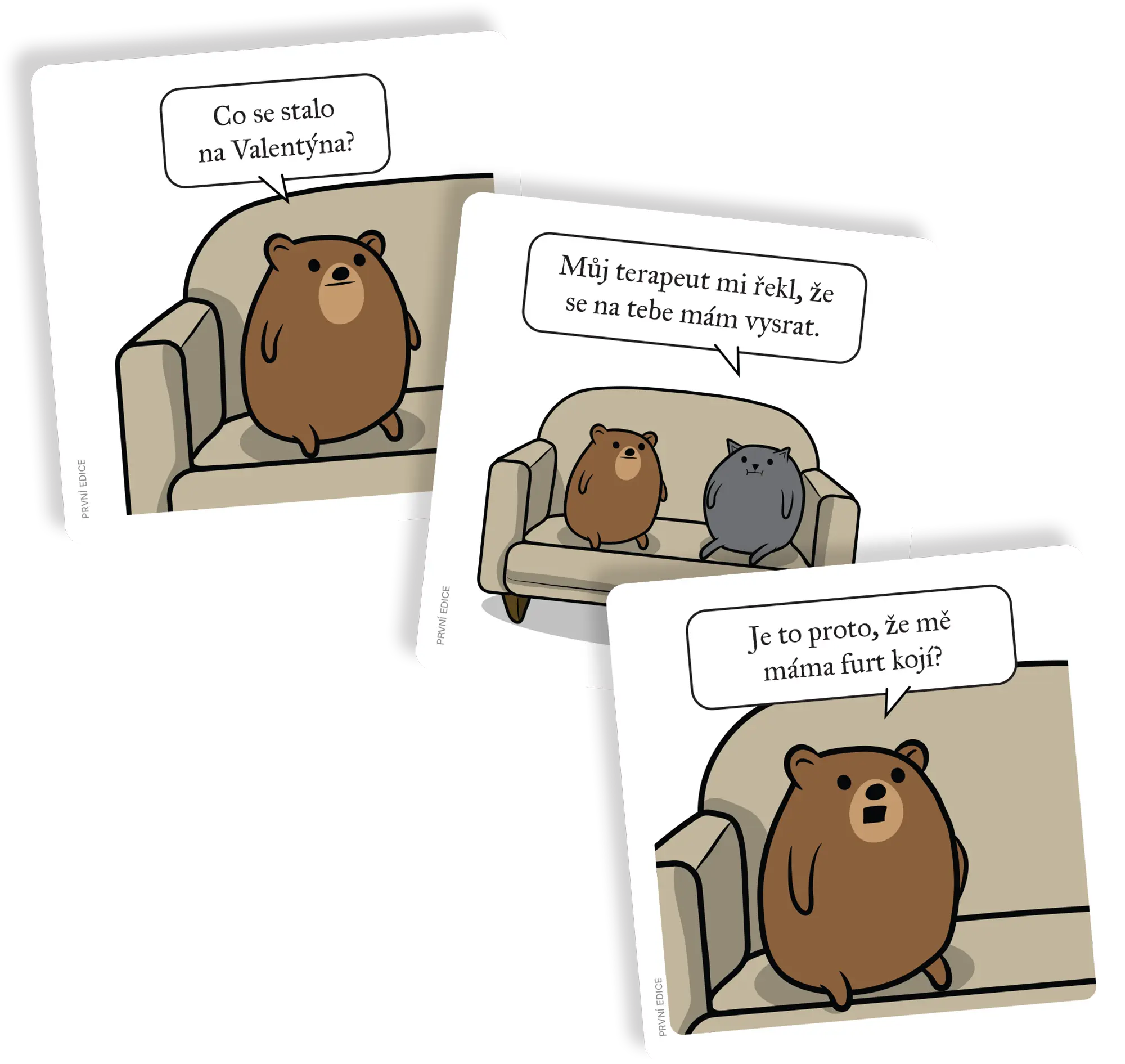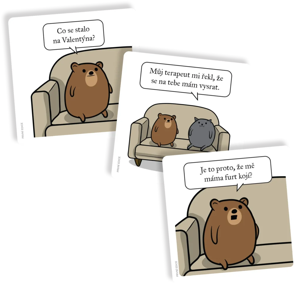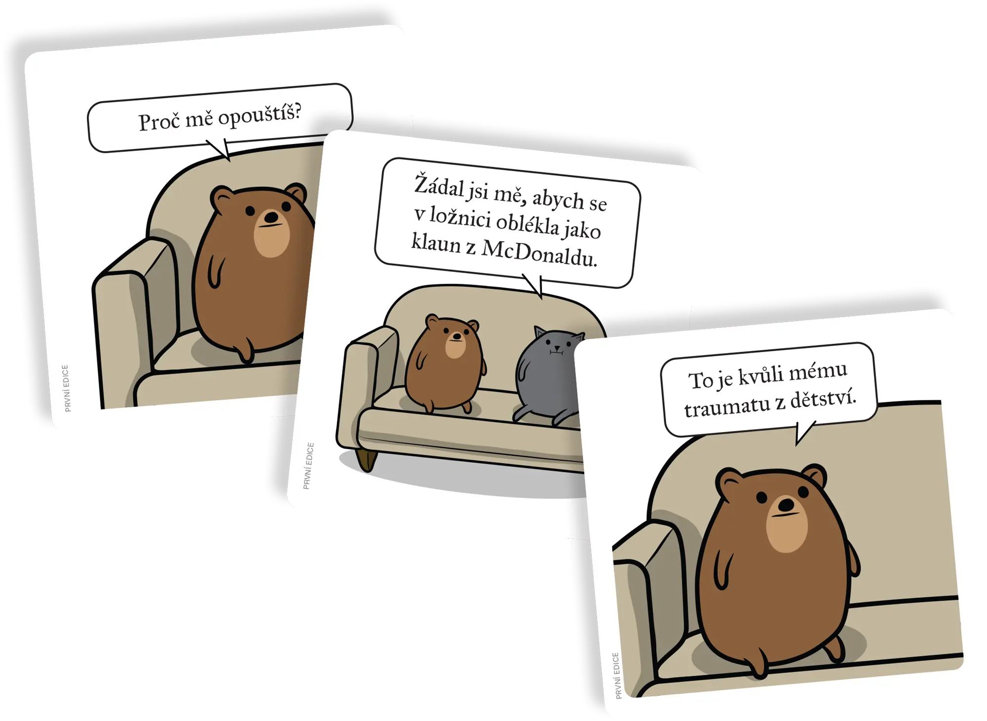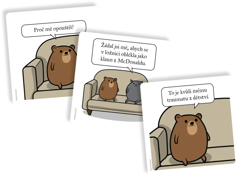 - Dokonalá volba pro ty, kteří milují hry jako Příšerný terapeut nebo Karty proti lidskosti.