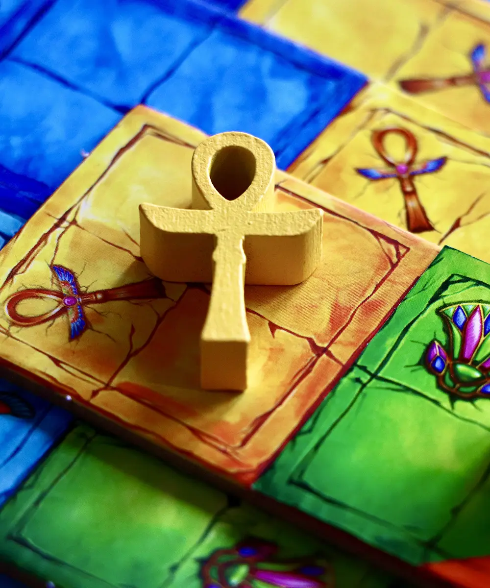 Zajímavým aspektem hry je, že při stavbě vyšších pater pyramidy můžete získávat body i za drahokamy v nižších patrech, pokud se vám podaří správně propojit barevné oblasti. To přidává hře další strategickou vrstvu a nutí vás přemýšlet několik tahů dopředu.