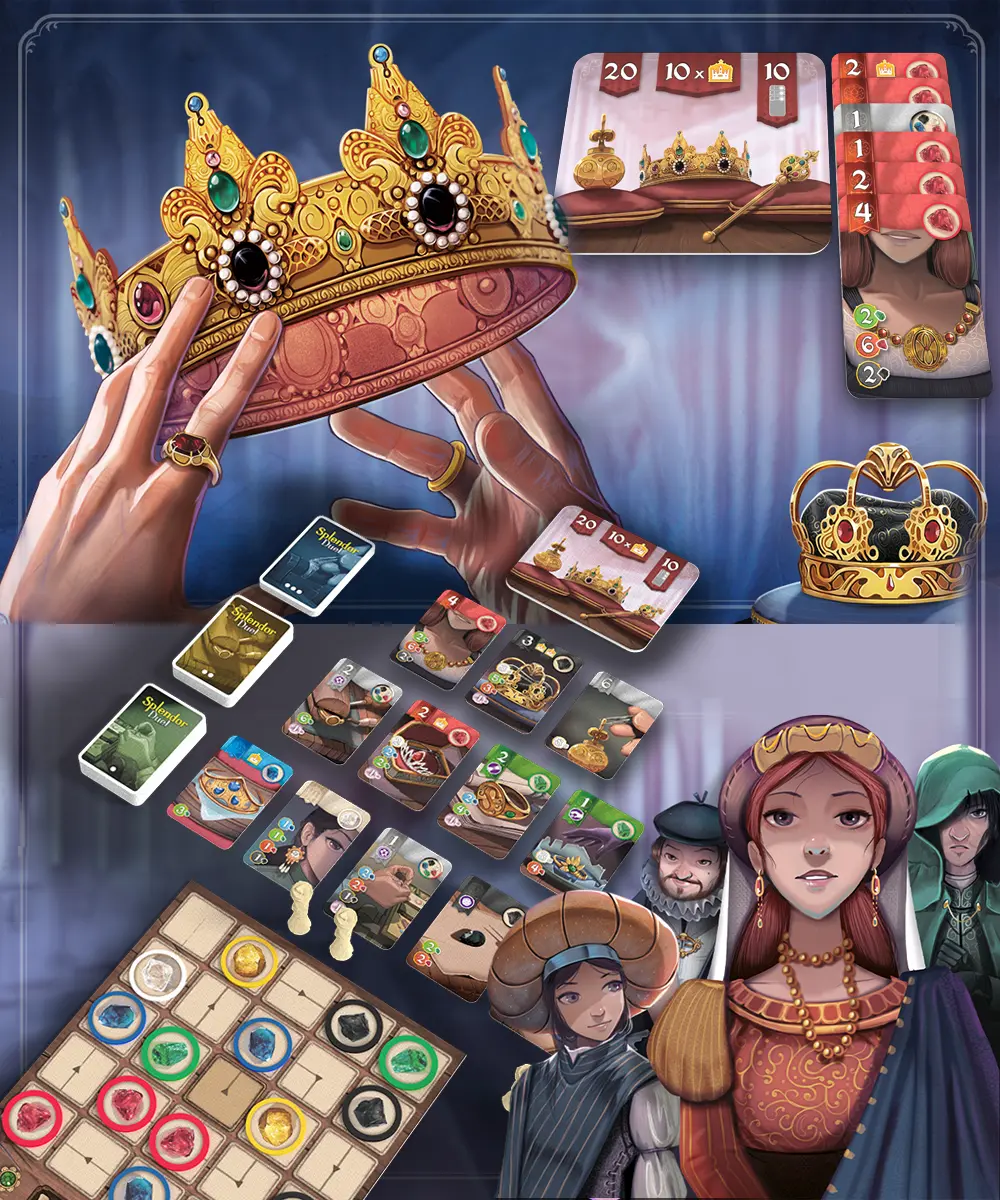 Ve hře Splendor Duel se stanete mistrem klenotnického cechu v renesanční Evropě. Vaším cílem je porazit svého rivala ve výrobě těch nejkrásnějších a nejcennějších šperků. Toho dosáhnete chytrým sbíráním drahokamů z herního plánu, jejich následným využitím k nákupu karet klenotů a získáváním přízně královského dvora.