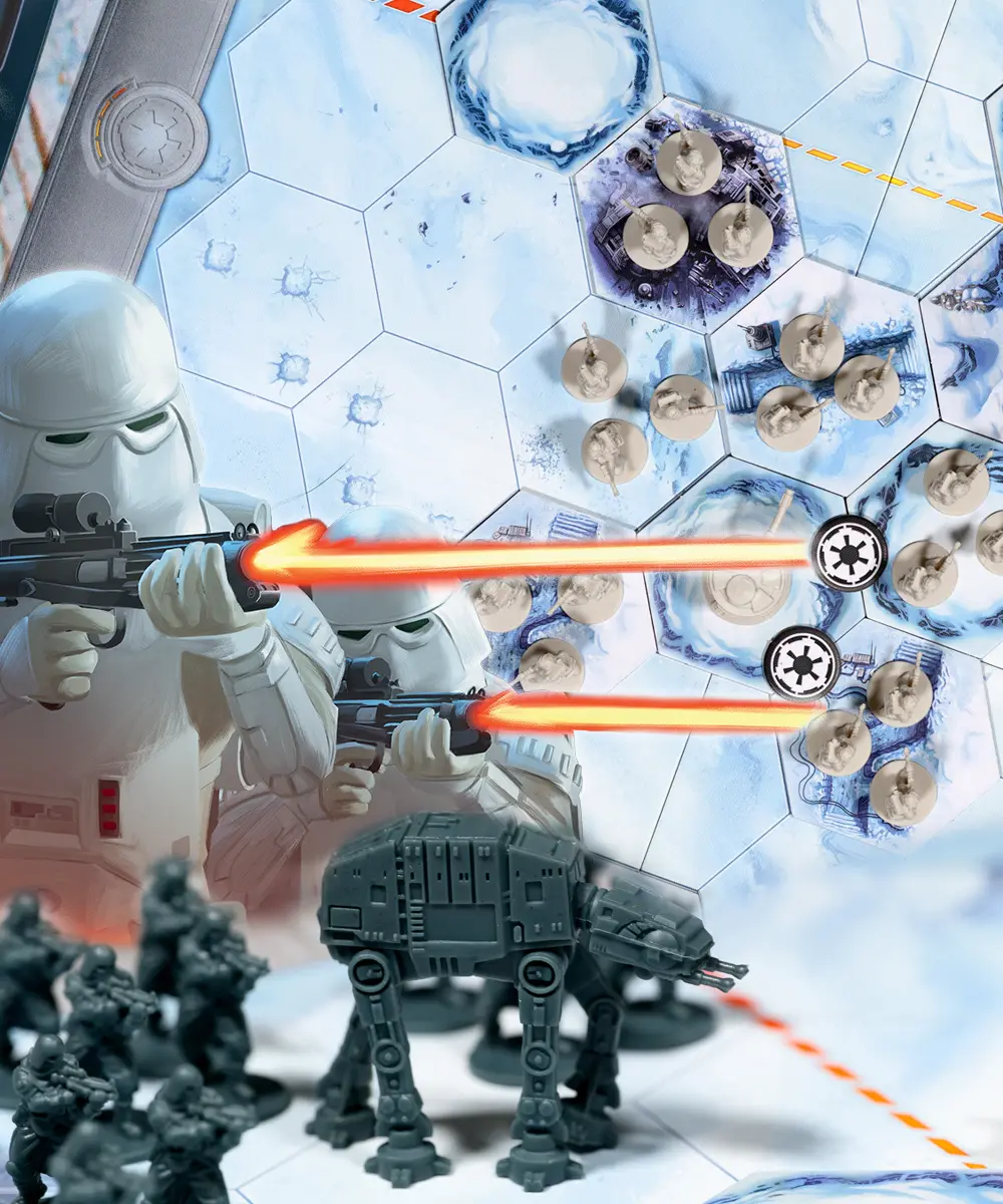 Před dávnými časy v předaleké galaxii… Mrazivý vítr bičuje nekonečné pláně ledové planety Hoth, zatímco z hlubin vesmíru se blíží neúprosná síla Galaktického impéria. Ticho přerušuje jen dunivý krok obřích AT-AT chodců, jejichž stín se rozprostírá nad zoufale bránící se základnou Povstalecké aliance. V hangárech startují sněžné spídry, piloti naposledy kontrolují své zbraně a velitelé vydávají poslední rozkazy k evakuaci Základny Echo. Připravte se na epický souboj mezi Galaktickým impériem a Povstaleckou aliancí, kde každý tah, každý rozkaz a každá oběť může změnit osud Hothu!