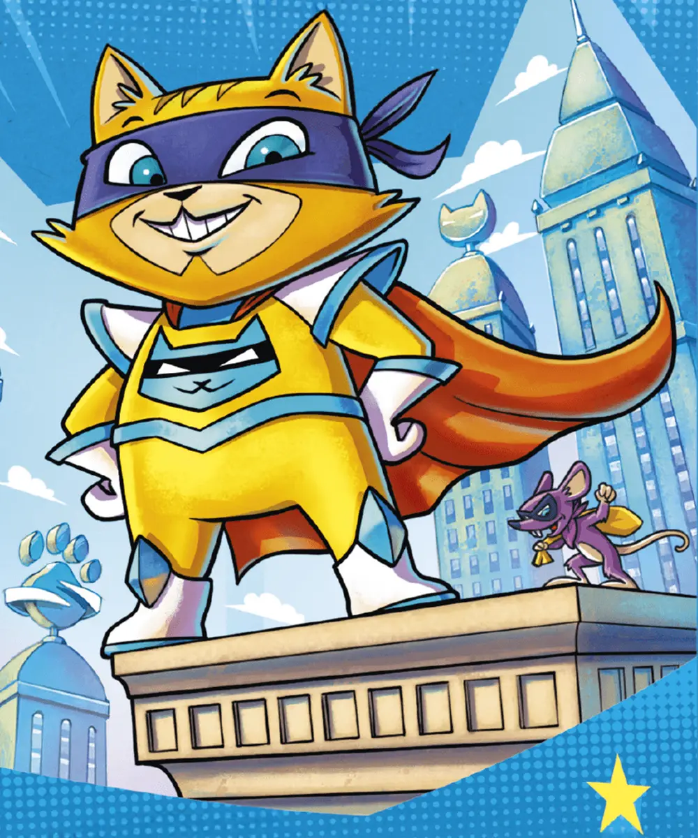 Roztomilá karetní hra Super Mňau! Najděte kočičího superhrdinu, budujte balíček a staňte se jeho parťákem v této rychlé rodinné hře.