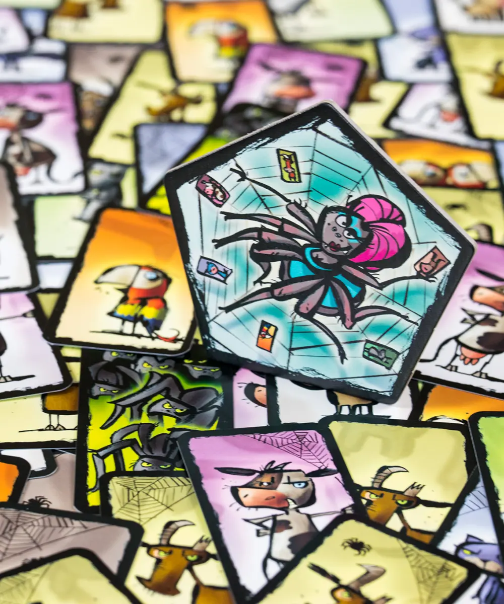 Hra nabízí několik úrovní obtížnosti. V základní verzi se soustředíte na počet pavouků na kartách a podle toho reagujete. S přibývajícími pravidly se hra stává komplexnější – pes mění směr hry, papoušek napodobuje všechna zvířata a kráva vám umožní hrát dvakrát po sobě. Každá chyba znamená, že si musíte vzít všechny vyložené karty – a to je poslední věc, kterou chcete!