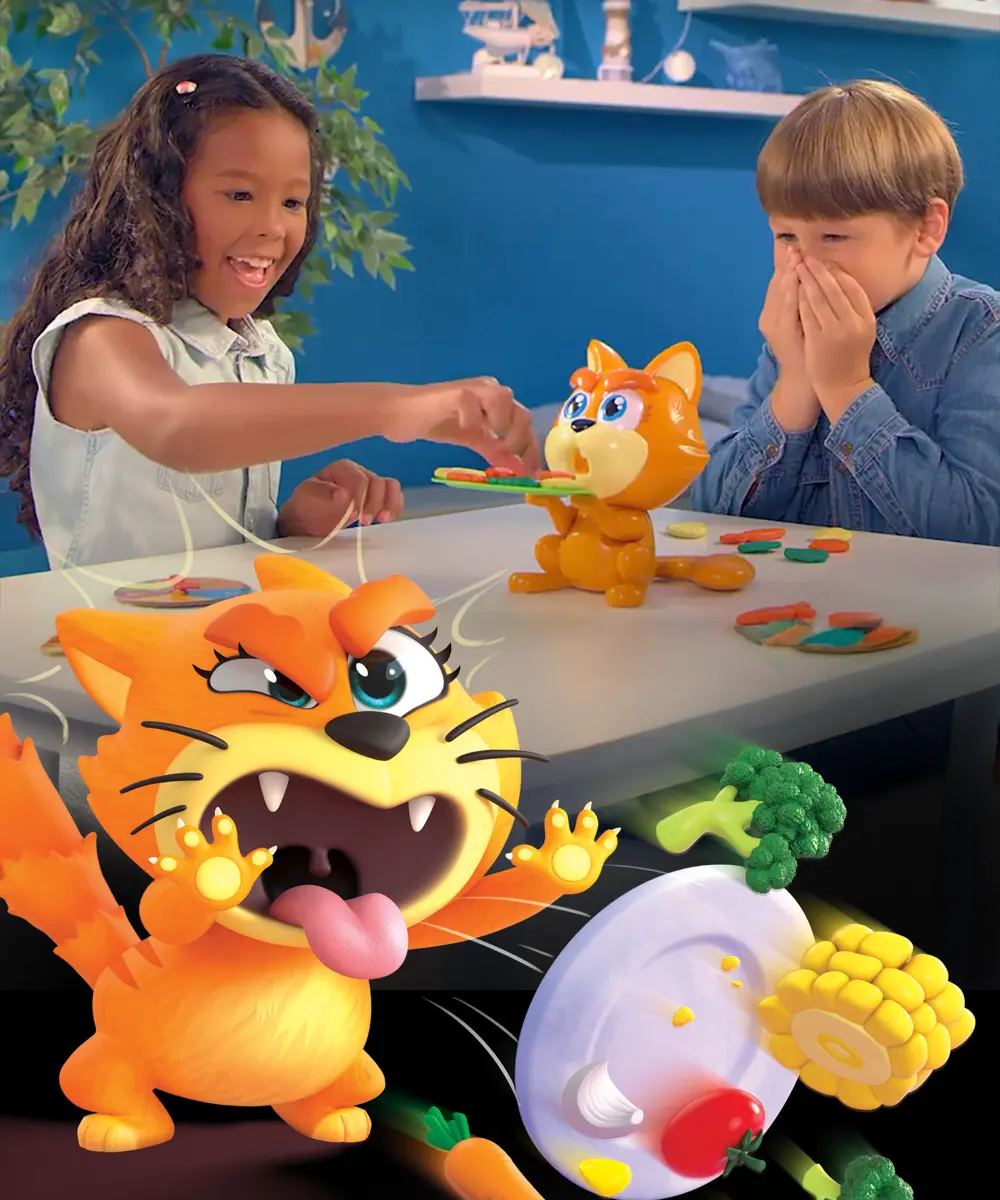Hráči mají za úkol zbavit se všech svých kousků zeleniny tím, že je postupně umisťují na talíř před kočičkou. Zní to jednoduše, ale pozor – kočička zeleninu nemá ráda a talíř je neustále v nebezpečí! Stačí jediný nešikovný pohyb nebo přetížení a celá porce se převrhne zpět. Každý tah přináší napětí i smích, protože nikdy nevíte, kdy kočička odmítne svůj zeleninový příděl.